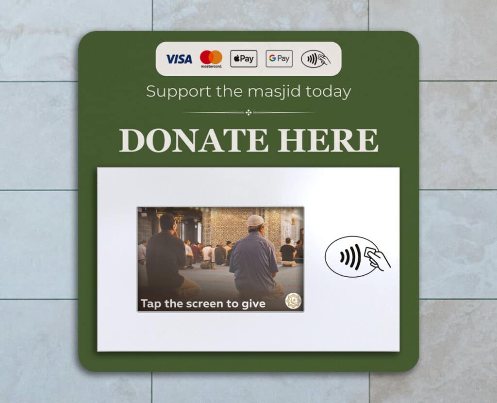 This means you can reduce the amount of time your device is out of action and ensure that mosque visitors can always donate. In-turn, allowing you to focus on important work like community building, distributing alms and keeping your masjid active.